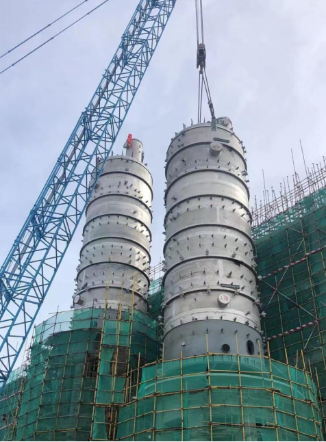 該項目在原盛和化工的地基上重建,施工場地小,超過100噸的設備有12臺。為確保此次吊裝順利完成,項目部克服工期緊、任務重、施工工藝復雜、多家單位交叉施工、設備難以“穿衣戴帽”等多重困難,精心組織、超前策劃、穩(wěn)步推進,編制吊裝施工方案,加強現(xiàn)場安全防護和施工組織,詳細向作業(yè)人員進行施工技術(shù)交底,確保此次吊裝安全、優(yōu)質(zhì)圓滿完成,受到業(yè)主單位的高度贊揚。